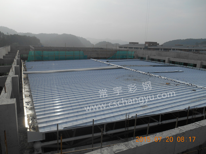發(fā)布時間:2015-7-29來源:常宇彩鋼作者:常宇彩鋼瀏覽次數(shù):(0) 1.0mm PVDF涂層直立鎖邊鋁鎂錳板應(yīng)用案例 _遵義會堂鋼結(jié)構(gòu)屋面